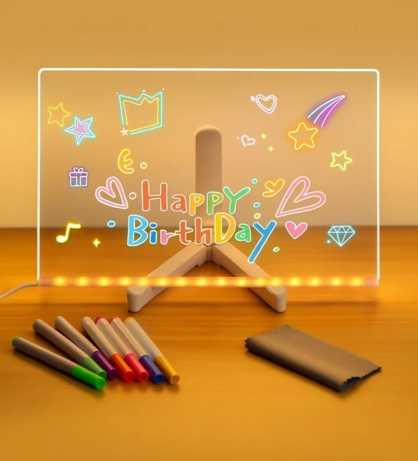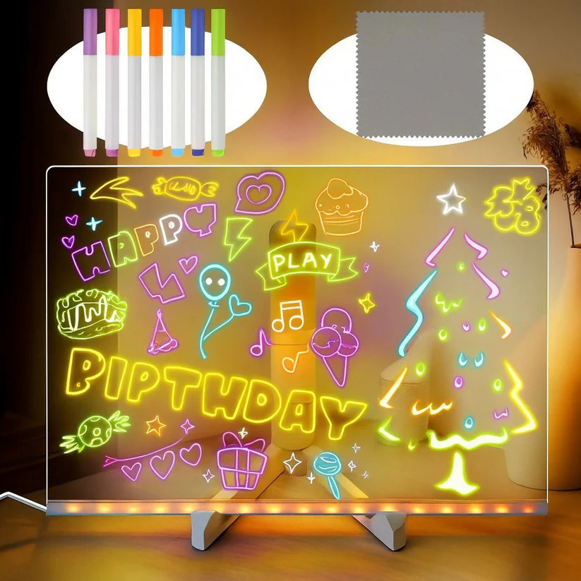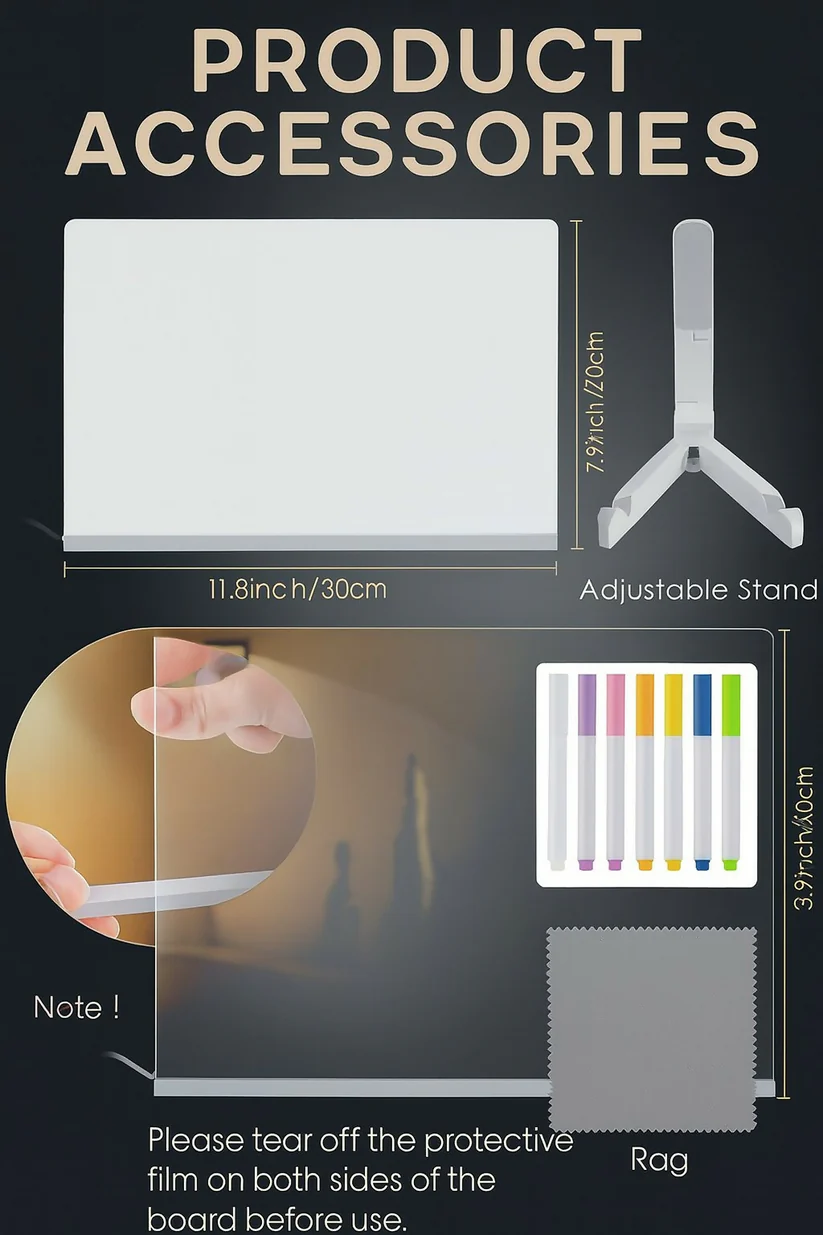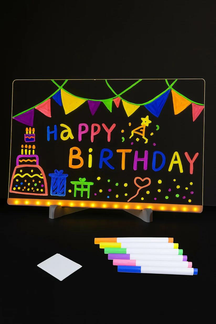 • Reusable & Writable Surface: Easy-to-clean acrylic surface supports repeated use with erasable neon markers (not included or optionally included).
