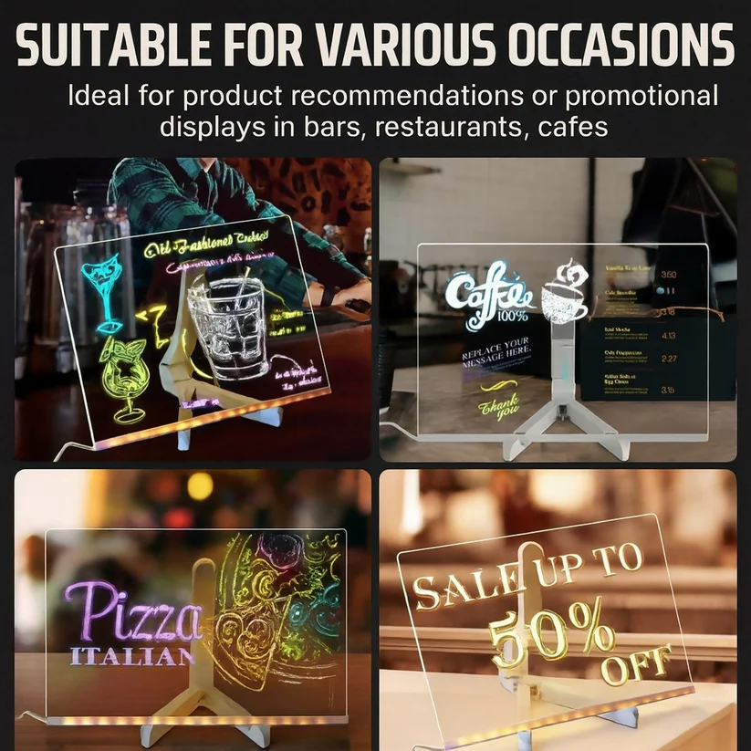 Acrylic LED Message Board Sign with Stand for Cafes, Bars, Restaurants