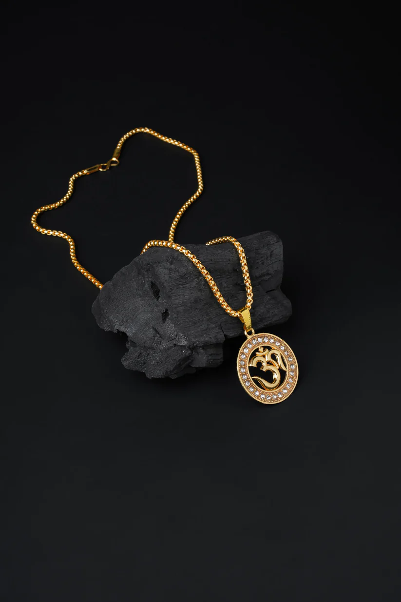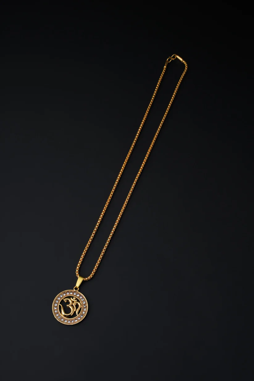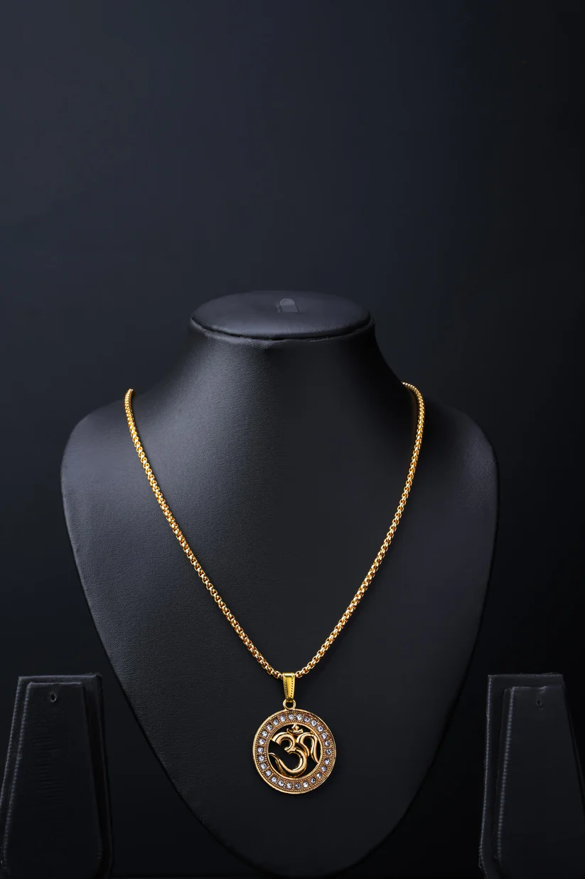 - Gold Finish OM, Rope Chain Pendant Locket Necklace Religious Jewellery For Men/Women