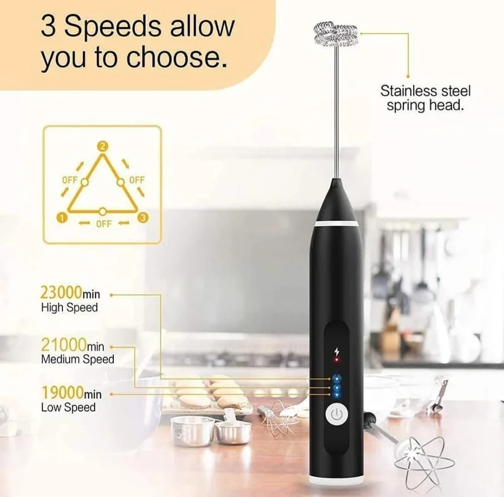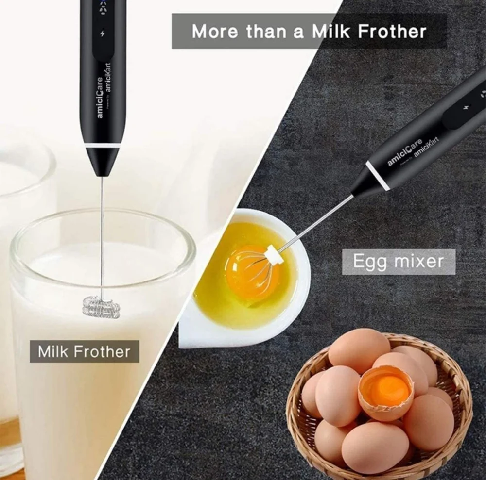 - Advanced mixing pulse technology, Which is less noisy and more robust is used in this milk foam maker. Stylishly designed in black to blend with any kitchen and appear sophisticated. To turn on or off, simply push the button. Foam may be made for coffee all types of Milks, Cream, Cappuccinos, Matcha lattes and hot chocolate with Ease.